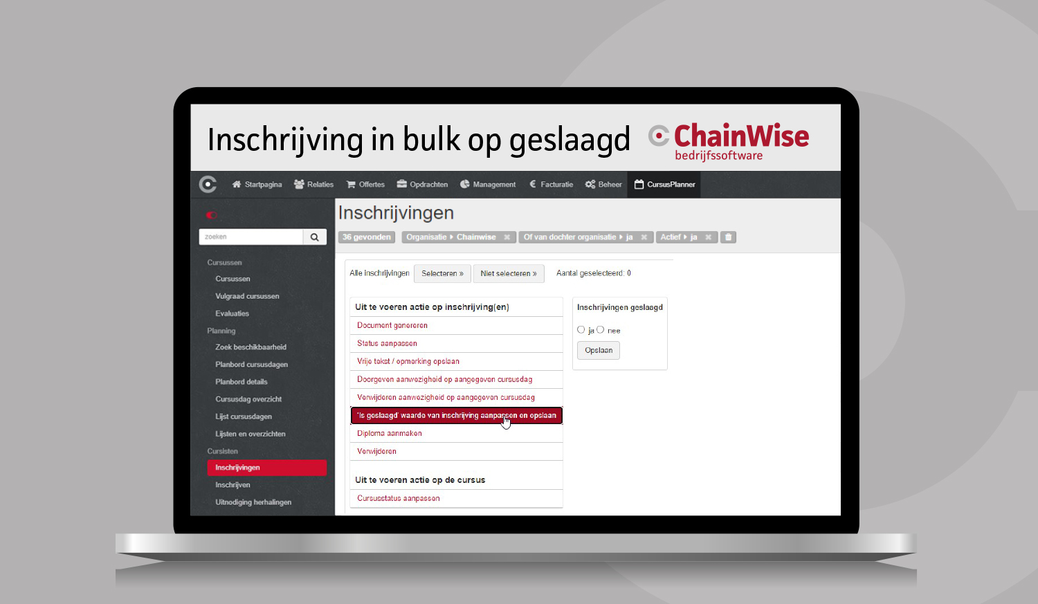 Cursusplanner: Inschrijvingen in bulk op geslaagd zetten